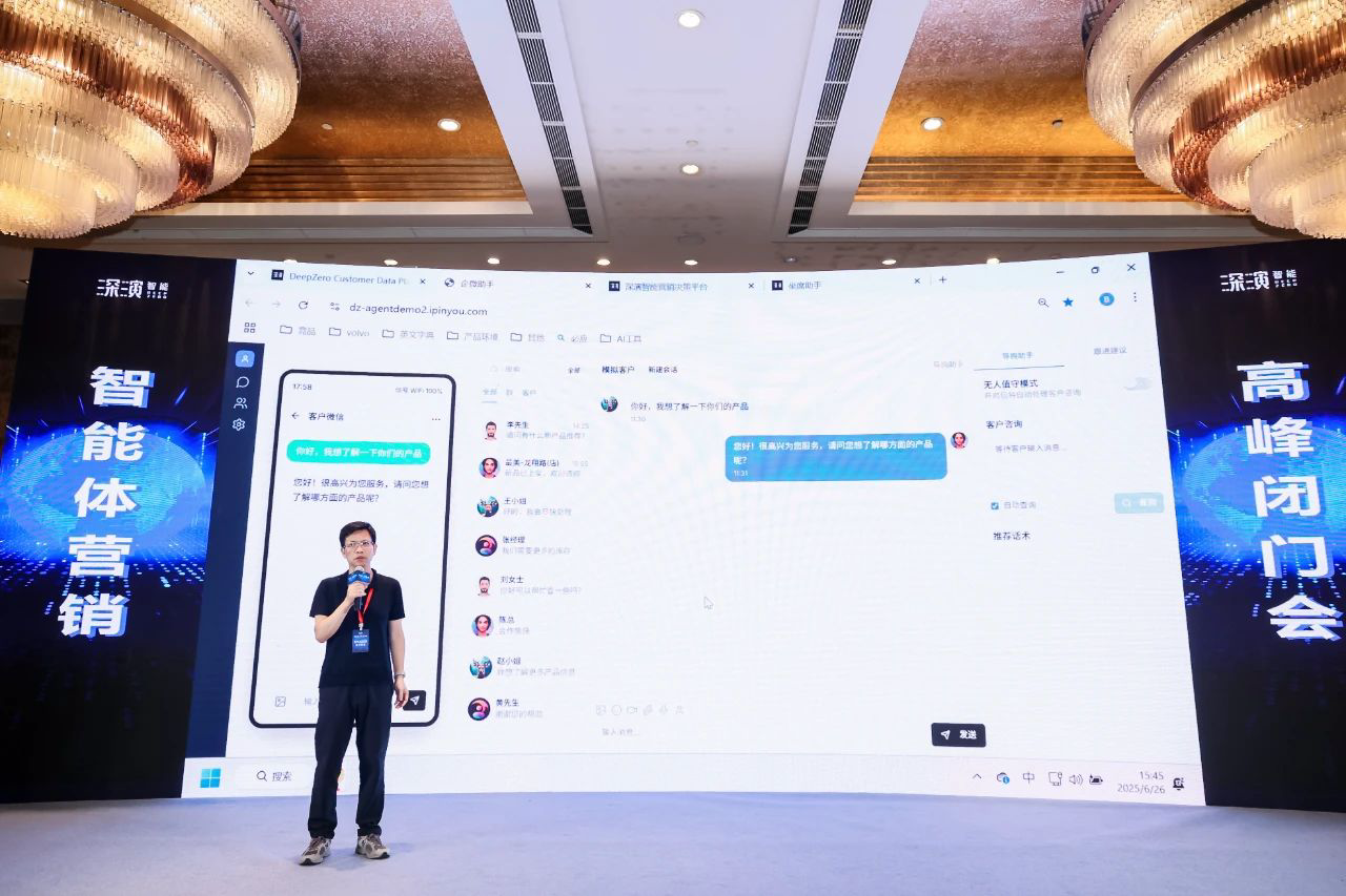 作为已经成功帮助几十家大型企业 AI Agent落地的行业领导者,Z6集团智能DeepAgent Neo全面赋能营销域和销售域。 黄晓南和Z6集团智能CTO欧阳辰与Z6集团智能副总裁曹玉骥一起,为嘉宾现场演示了CRM、Social、销售、客服等场景的全面智能体,情景展现了DeepAgent Neo如何全面赋能企业各个环节。
